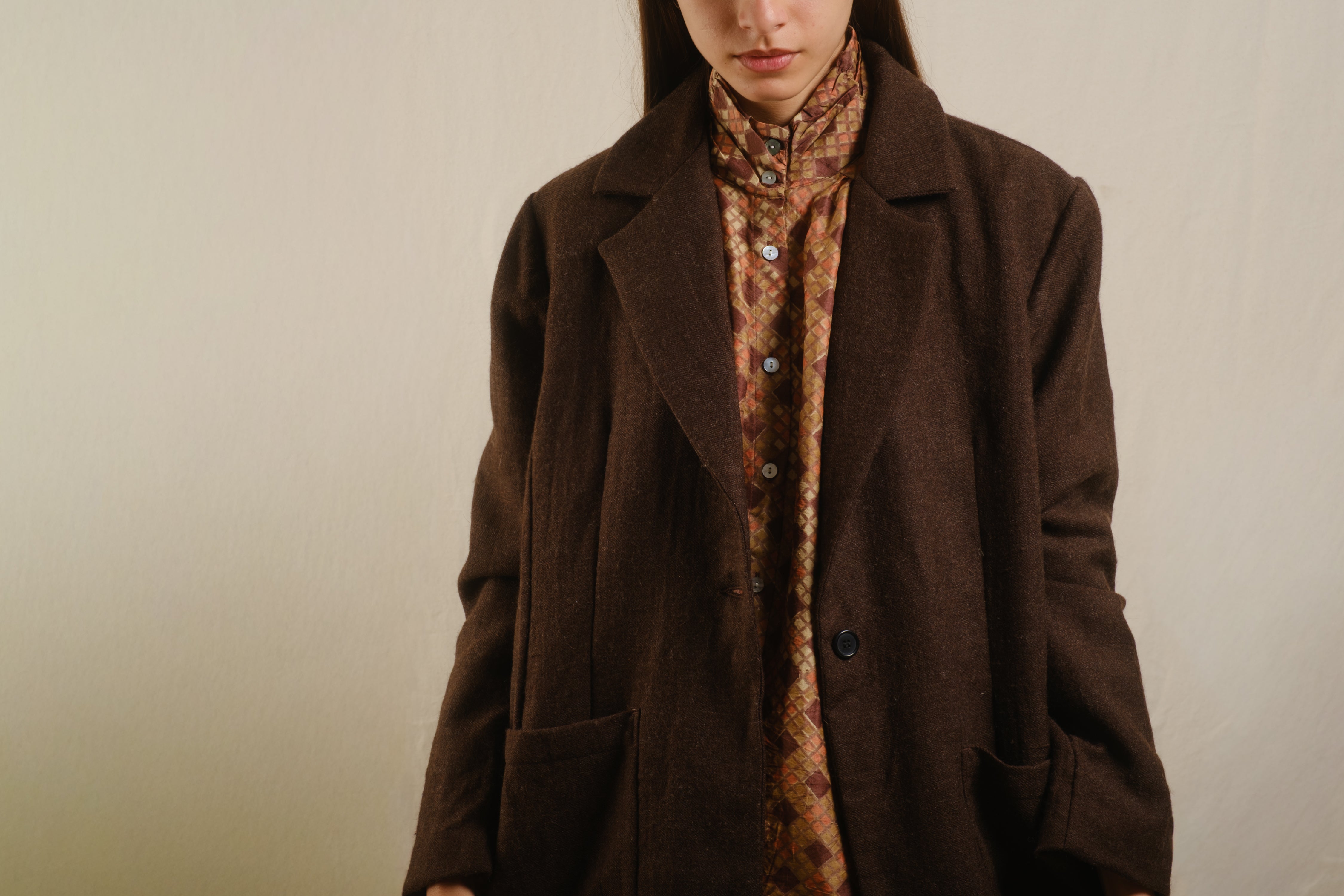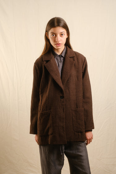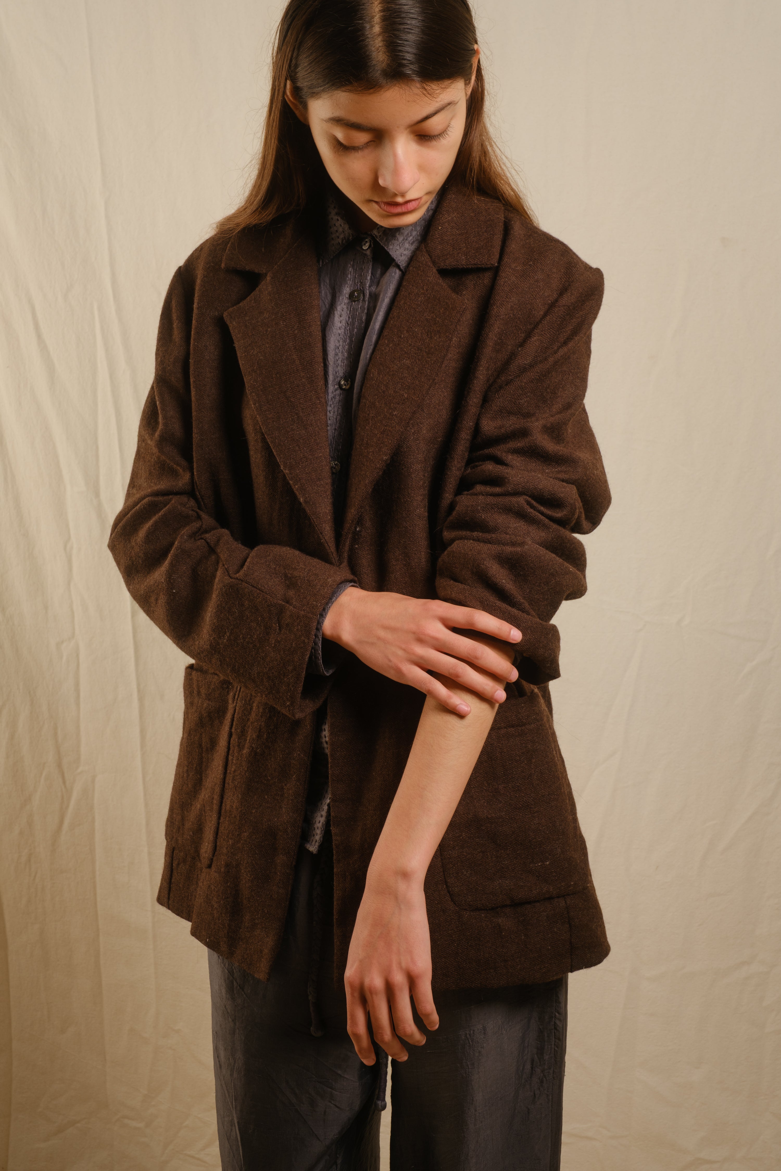 The Ekta Blazer in Wool in Brown is made in small batches using these traditional techniques and materials.