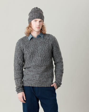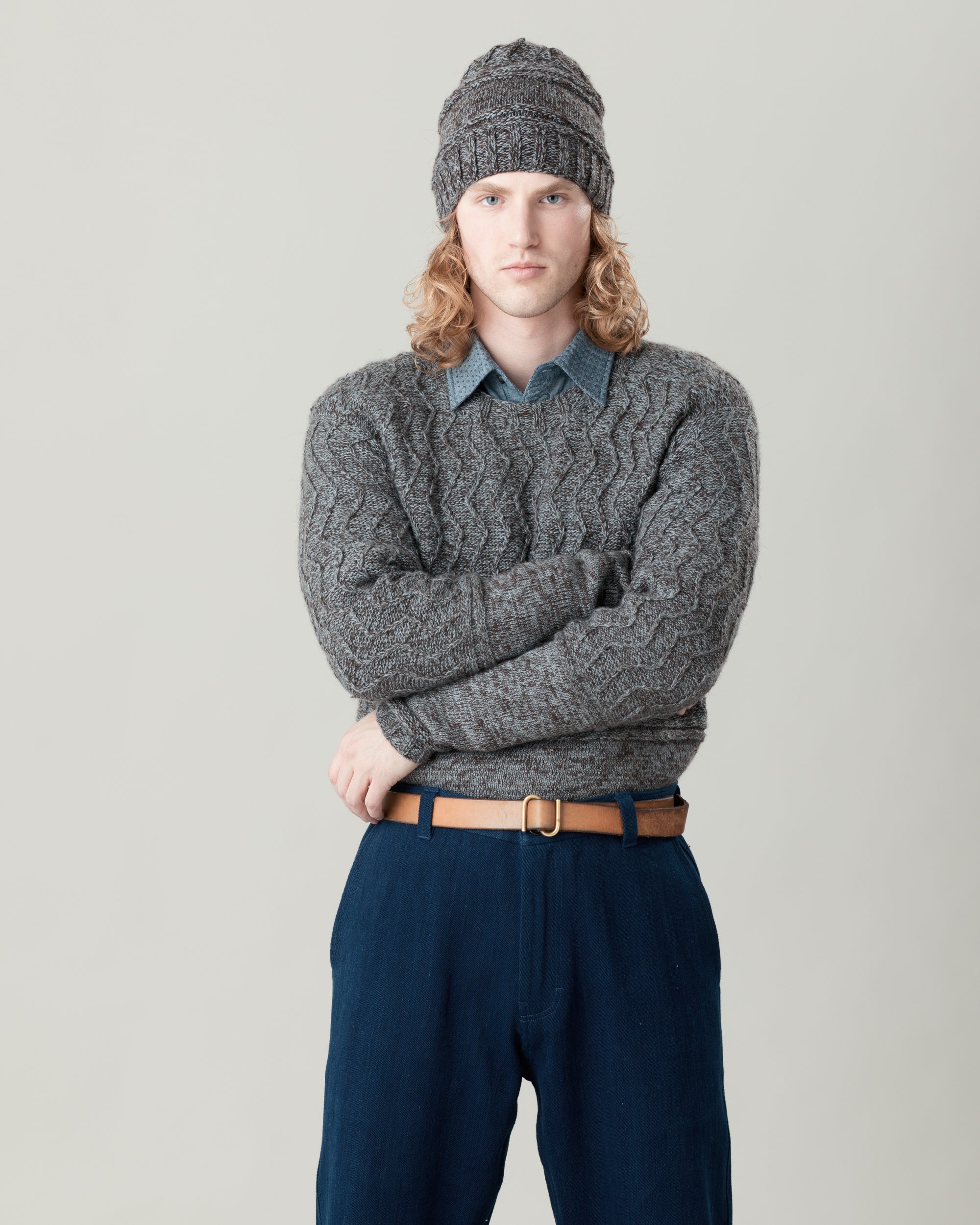 Our Hafi crewneck sweater is hand-knit using a blend of yak/lambswool wool native to the region it was made.