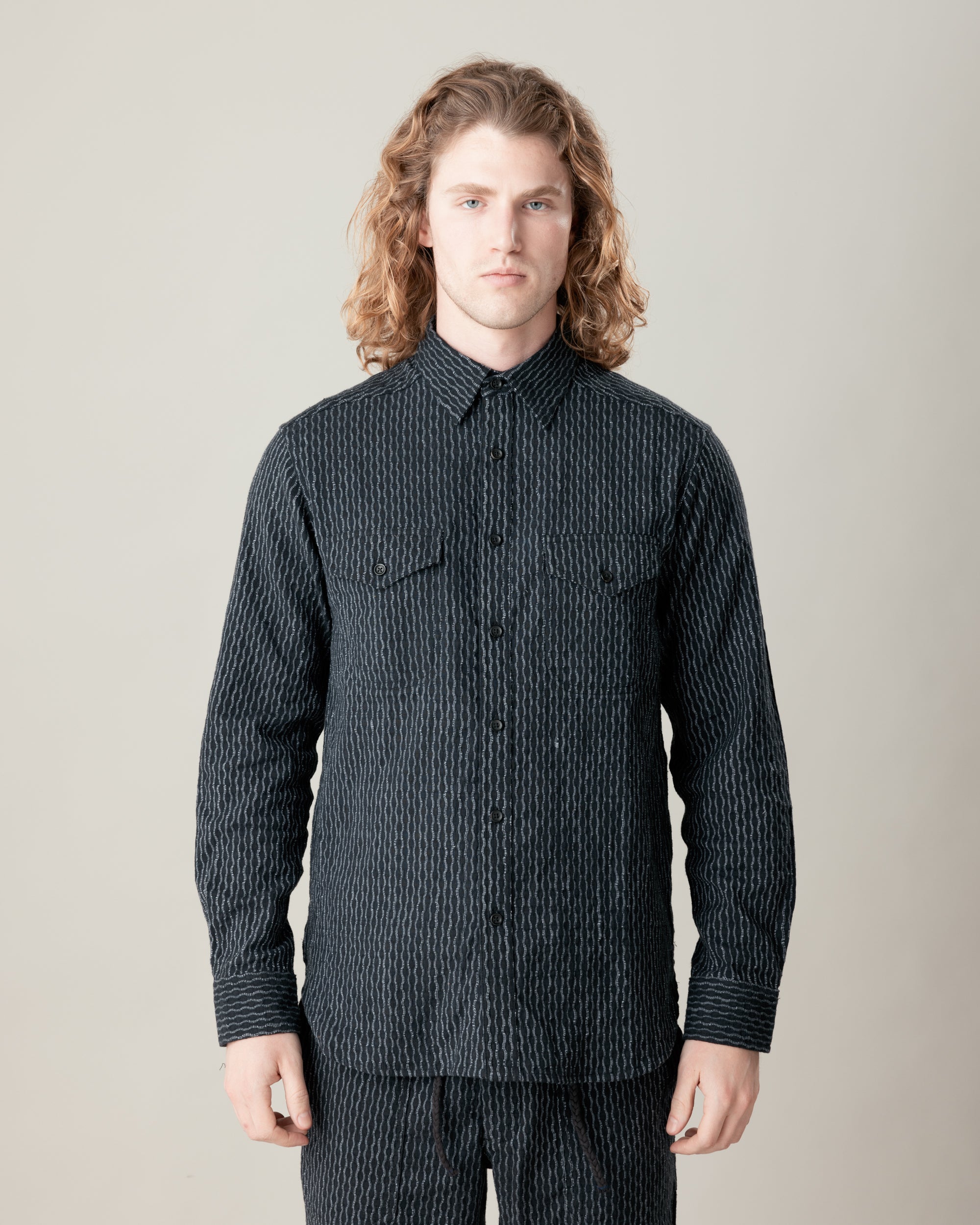 The Mazdoor Shirt Distortion Weave Black is made in small batches using these traditional techniques and materials.