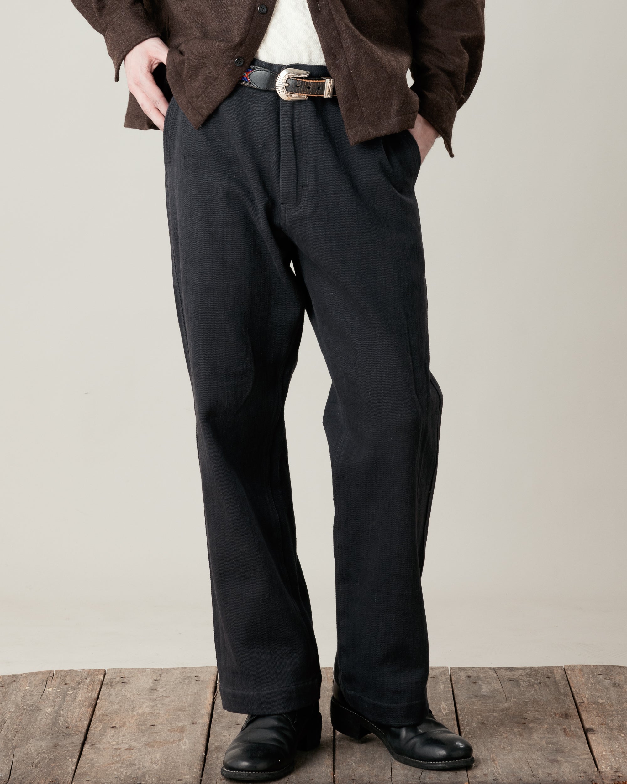 The Tamal Pant Cotton Twill Black is made in small batches using these traditional techniques and materials.