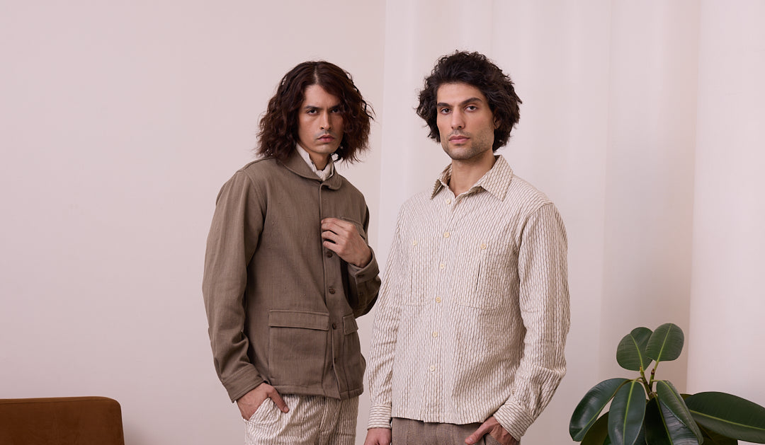 SMLXLXXLHARSHIL SHIRT - DISTORTION WEAVE KHAKI $175.00 /