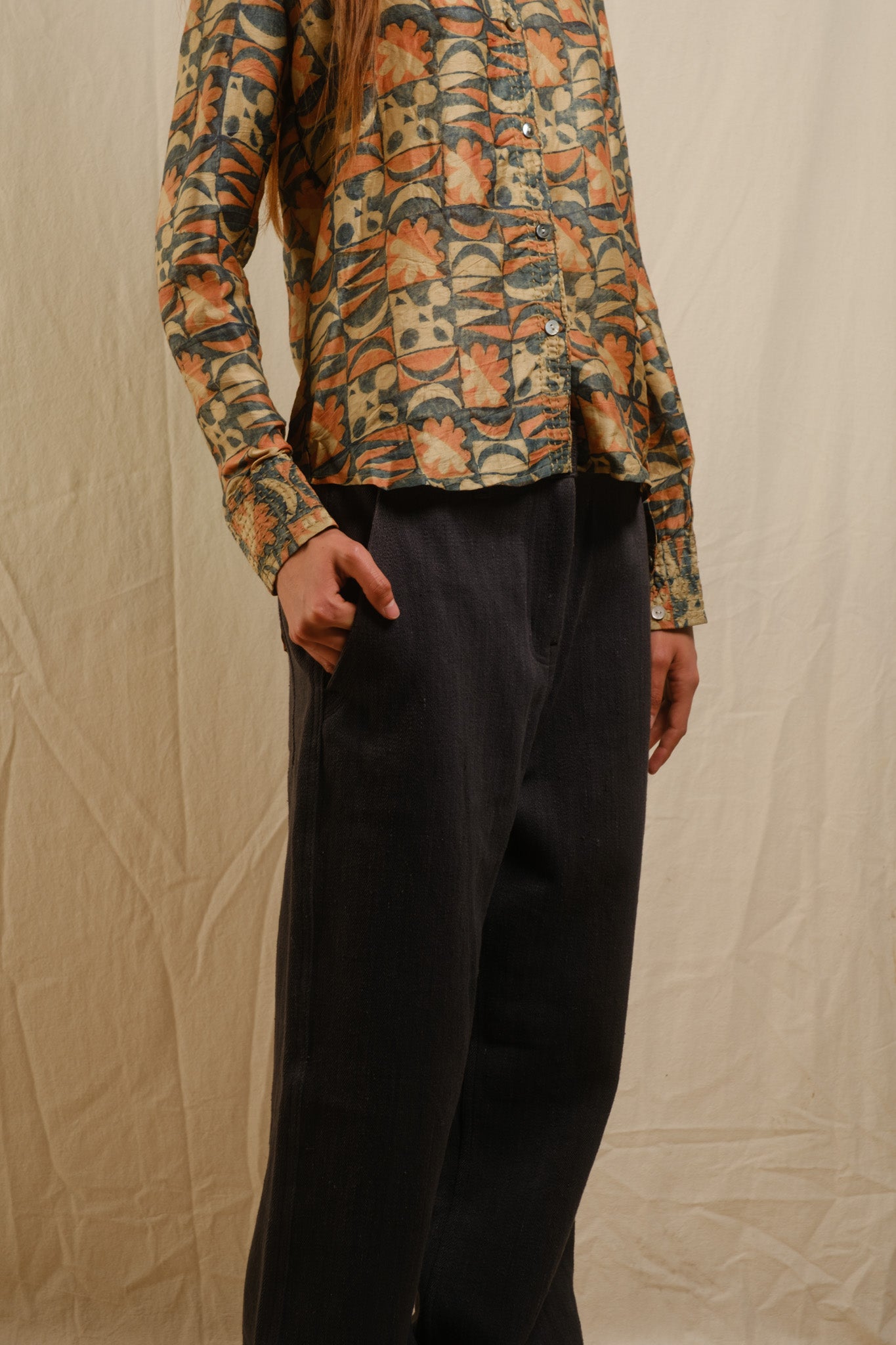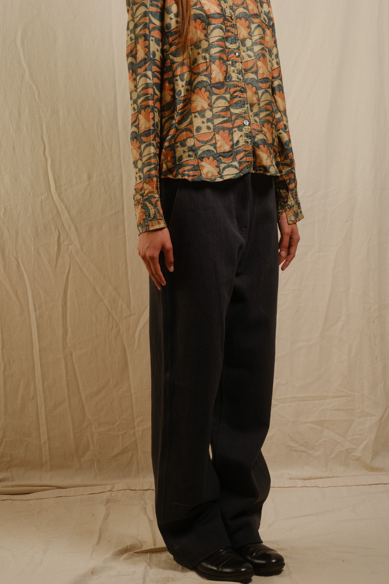 The Fitoor Pant - Twill Denim in Black is made in small batches using these traditional techniques and materials.