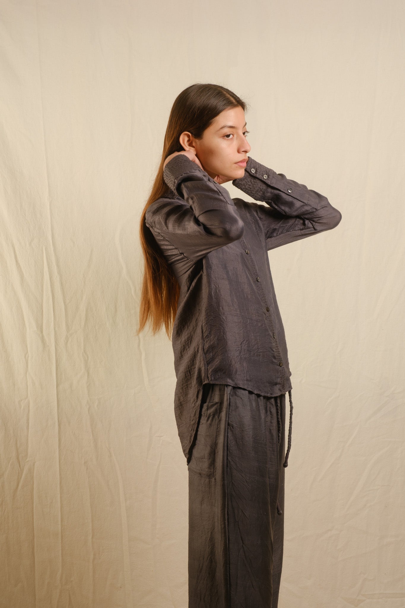 Silk garments are celebrated for their luxurious sheen and fluid drape. Naturally dyed and delicately hand-finished, they bring timeless elegance to any wardrobe.