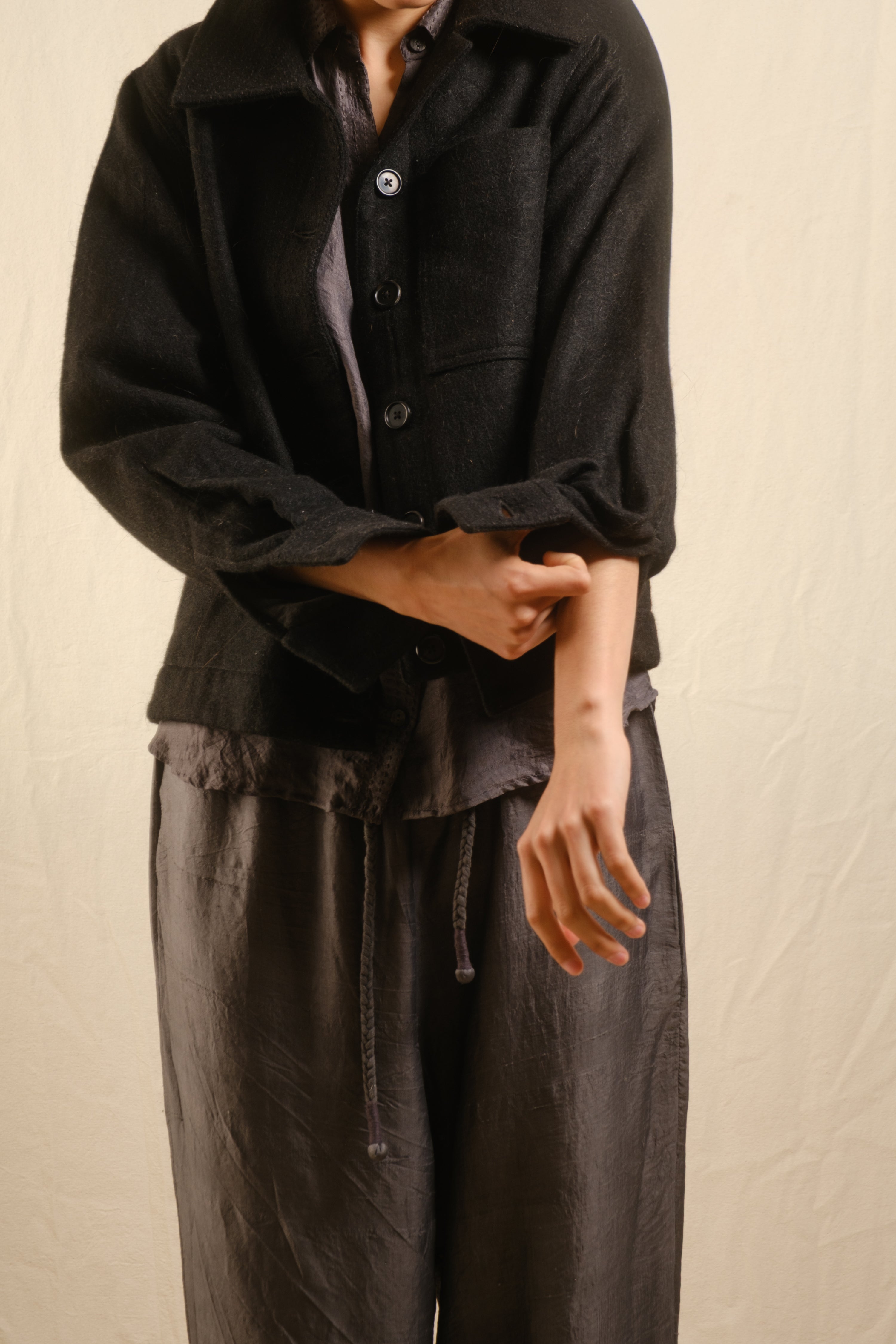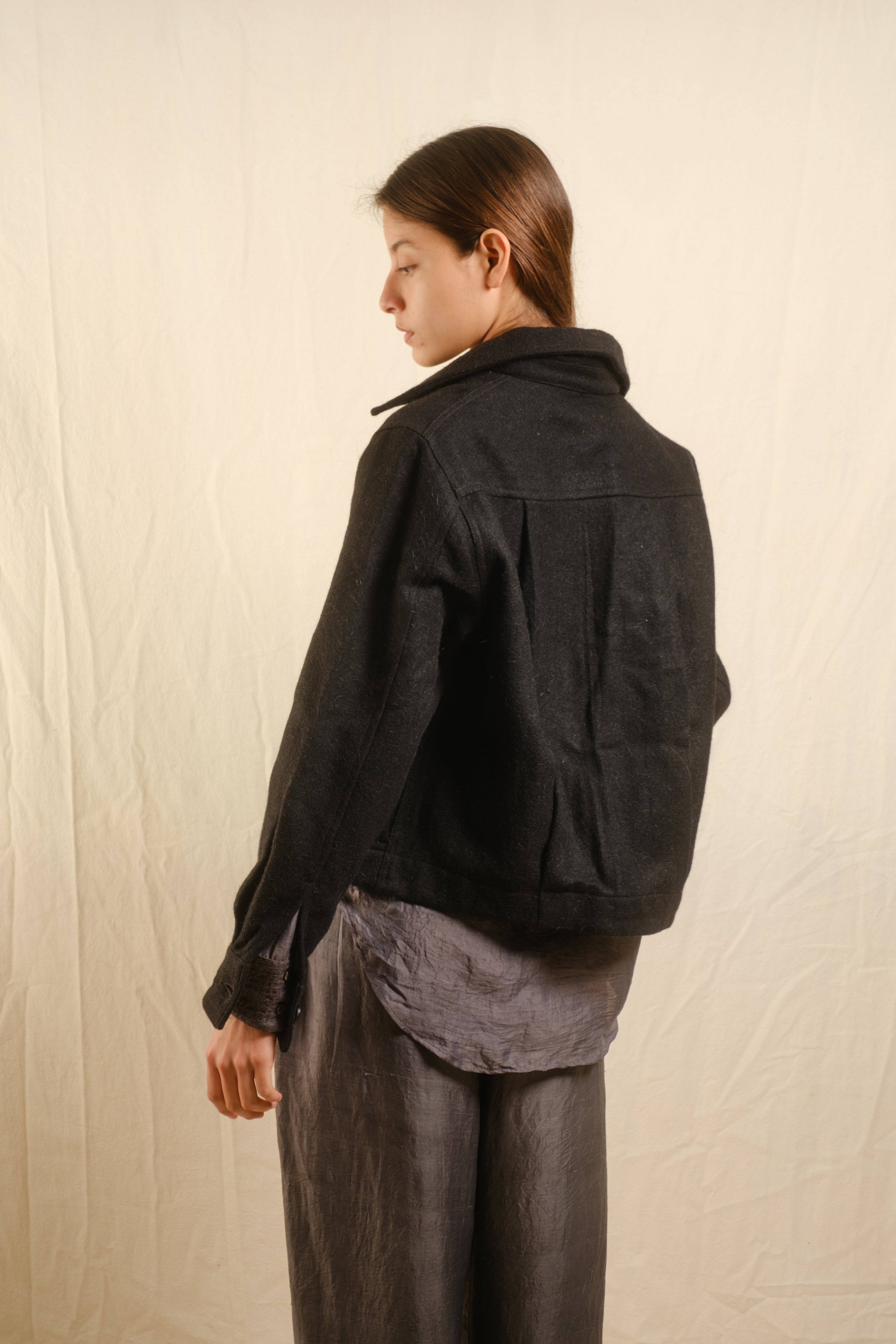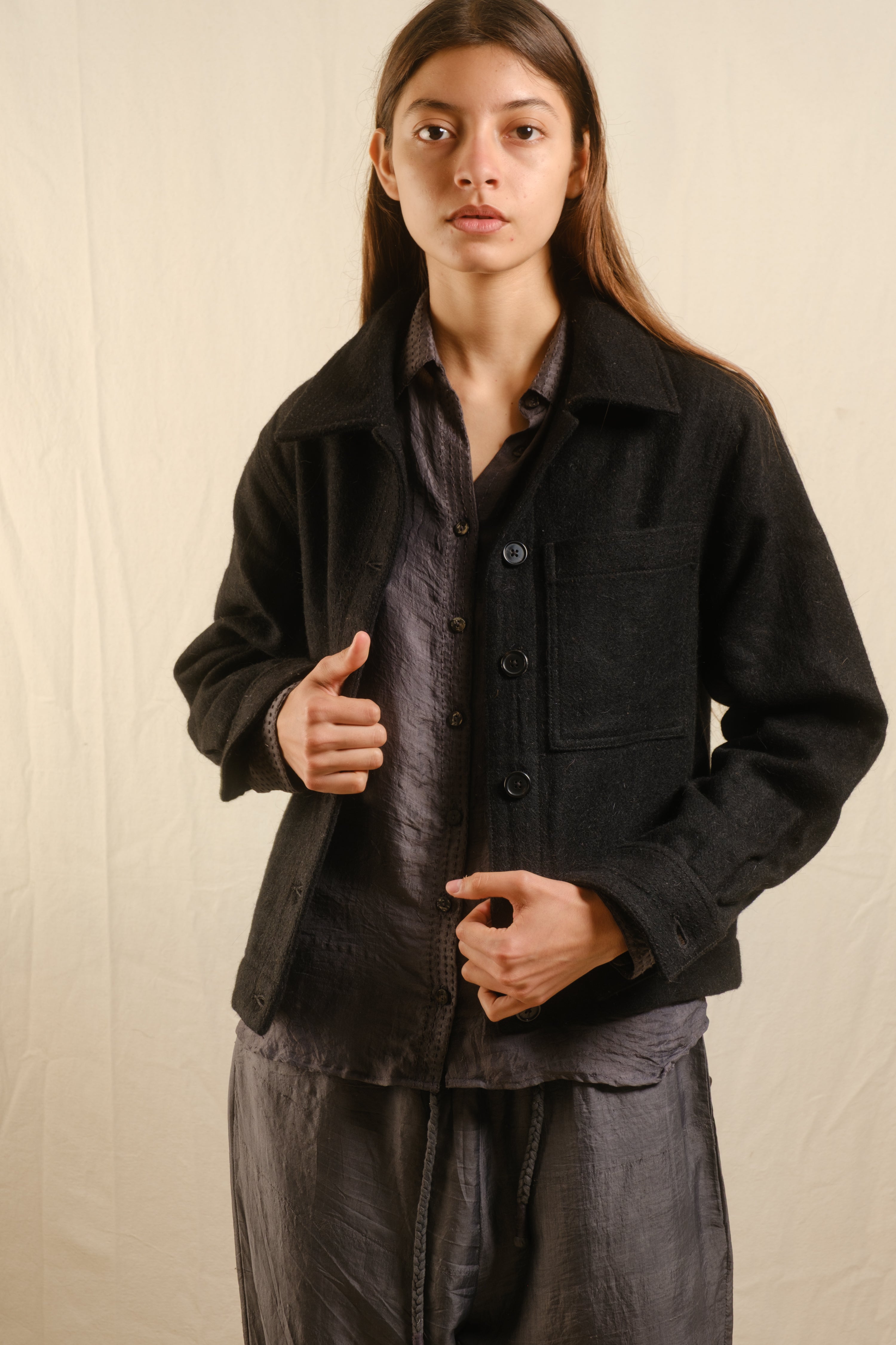 The Padma Jacket Wool Black is made in small batches using these traditional techniques and materials.